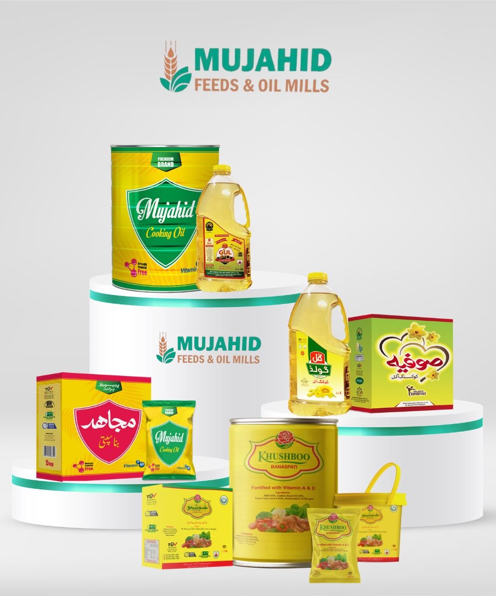 Mujahid Feeds & Oil Mills has become a trusted name in Pakistan’s edible oil and ghee sector. With a commitment to purity, nutrition, and quality, we serve households, wholesalers, and businesses with products that meet international food safety standards.